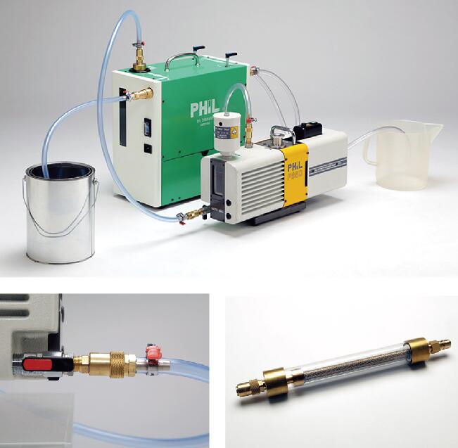 只需使用連接的軟管和連接器將設(shè)備與真空泵連接即可進(jìn)行泵油更換。